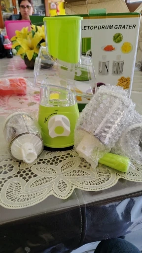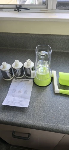 Kitchen Helper: This hand-held slicer made from food-grade stainless steel & BPA-free ABS plastic offers all the functionality of multiple appliances with changeable stainless blades. These blades can cut through all kinds of vegetables, grating cheese, slicing potatoes, and cutting fruits; they can even create paste-like vegetables or mashed potatoes.